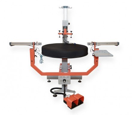 Prensa Esticadora de Barbante: máquina utilizada para realizar o estofamento de assento e encosto de cadeiras. É projetada para agregar um dispositivo de estiramento de barbante, onde é eliminado o processo de grampeamento em todo o tecido.